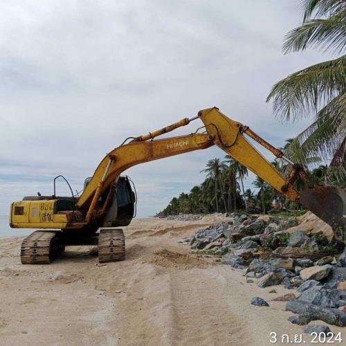 สำนักช่าง ขุดตักเรียงหิน เพื่อป้องกันคลื่นกัดเซาะชายฝั่งทะเลในช่วงฤดูมรสุมนี้ ในพื้นที่ บ้านท่าบอน หมู่ที่ 9 ตำบลท่าบอน อำเภอระโนด