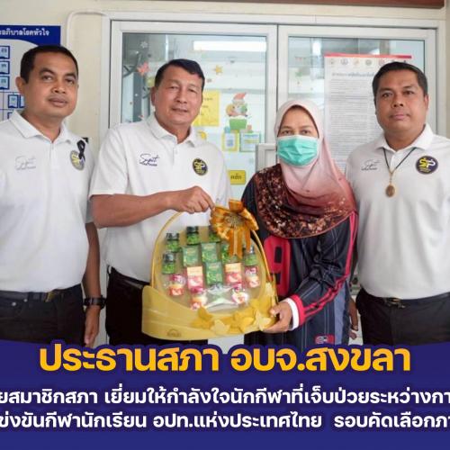 ประธานสภา อบจ.สงขลา เยี่ยมให้กำลังใจนักกีฬาที่เจ็บป่วยระหว่างการแข่งขันกีฬานักเรียน อปท.แห่งประเทศไทย ครั้งที่ 40 รอบคัดเลือกภาคใต้ " ลิกอร์เกมส์ "