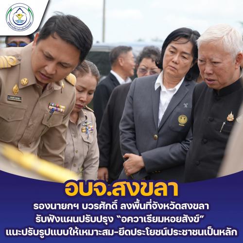 รองนายกฯ บวรศักดิ์ ลงพื้นที่จังหวัดสงขลา รับฟังแผนปรับปรุง “อควาเรียมหอยสังข์” แนะปรับรูปแบบให้เหมาะสม-ยึดประโยชน์ประชาชนเป็นหลัก