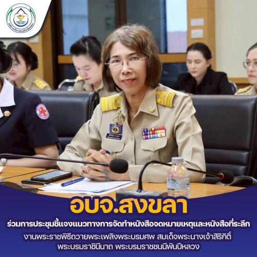 อบจ.สงขลา ร่วมการประชุมชี้แจงแนวทางการจัดทําหนังสือจดหมายเหตุและหนังสือที่ระลึก งานพระราชพิธีถวายพระเพลิงพระบรมศพ สมเด็จพระนางเจ้าสิริกิติ์ พระบรมราชินีนาถ พระบรมราชชนนีพันปีหลวง