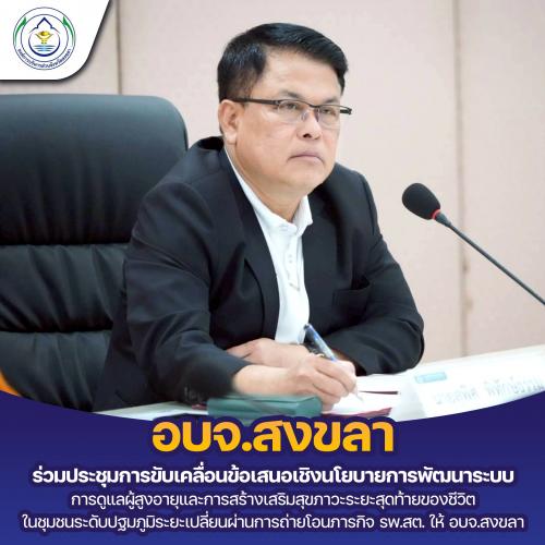 อบจ.สงขลา ร่วมประชุมการขับเคลื่อนข้อเสนอเชิงนโยบายการพัฒนาระบบการดูแลผู้สูงอายุและการสร้างเสริมสุขภาวะระยะสุดท้ายของชีวิตในชุมชนระดับปฐมภูมิระยะเปลี่ยนผ่านการถ่ายโอนภารกิจ รพ.สต. ให้ อบจ.สงขลา