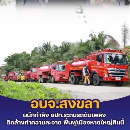 อบจ.สงขลา จับมือ อปท. ระดมรถดับเพลิง ลุยฉีดล้างทำความสะอาด ฟื้นฟูเมืองหาดใหญ่ เพื่อความสะอาด ปลอดภัย ของพี่น้องประชาชน
