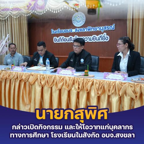 นายกฯ สุพิศ กล่าวเปิดกิจกรรม และให้โอวาทแก่บุคลากรทางการศึกษา โรงเรียนในสังกัด อบจ.สงขลา หวังให้พัฒนาทักษะให้สร้างสุขภาวะทางจิตเชิงบวก ต่อทั้งตัวครู และนำไปสู่ผู้เรียนต่อไป