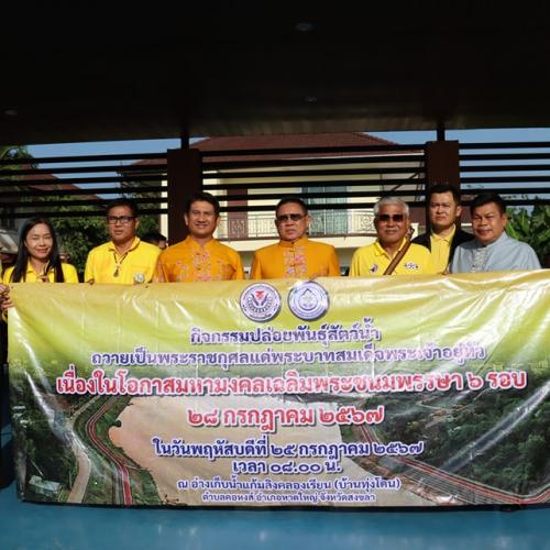 อบจ.สงขลา ร่วมกับเทศบาลเมืองคลองแห จัดกิจกรรมจิตอาสาพัฒนาปล่อยพันธุ์สัตว์น้ำ เฉลิมพระเกียรติพระบาทสมเด็จพระเจ้าอยู่หัว เนื่องในโอกาสพระราชพิธีมหามงคลเฉลิมพระชนมพรรษา 6 รอบ 28 กรกฎาคม 2567