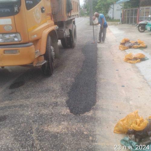สำนักช่าง อบจ.สงขลา ดำเนินการซ่อมแซมถนนลาดยางชนิดถุง เสริมขอบคูระบายน้ำที่ทรุดตัวลง ในพื้นที่บ้านเกาะหมี ตำบลคอหงส์ - บ้านเกาะหมีใน ตำบลคลองแห อำเภอหาดใหญ่ จังหวัดสงขลา