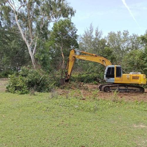 สำนักช่าง อบจ.สงขลา ดำเนินการถางป่า ปรับพื้นที่สนาม ในพื้นที่ หมู่ที่ 2 ตำบลกระดังงา อำเภอสทิงพระ จังหวัดสงขลา