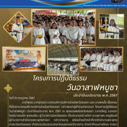 โครงการปฏิบัติธรรม วันอาสาฬหบูชา ประจำปีงบประมาณ พ.ศ.2567 ณ พุทธมณฑลจังหวัดสงขลา อำเภอหาดใหญ่ จังหวัดสงขลา