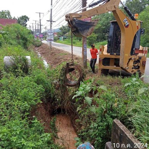 สำนักช่าง อบจ.สงขลา ดำเนินการขุดลอกคูระบายน้ำกำจัดวัชพืช - วางท่อและซ่อมแซมถนนลาดยาง ในเขตพื้นที่ สายบ้านทุ่งรี ตำบลคอหงส์ - บ้านเขากลอย ตำบลท่าข้าม อำเภอหาดใหญ่ จังหวัดสงขลา