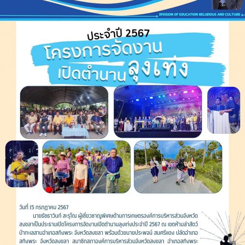 โครงการจัดงานเปิดตำนานลุงเท่ง ประจำปี 2567 ณ เขตห้ามล่าสัตว์ป่าทะเลสาบ อำเภอสทิงพระ จังหวัดสงขลา
