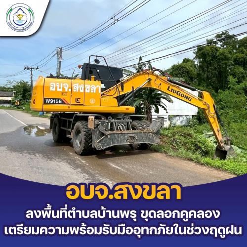 อบจ.สงขลา ลงพื้นที่ตำบลบ้านพรุ ขุดลอกคูคลองเตรียมความพร้อมรับมืออุทกภัยในช่วงฤดูฝน