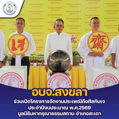 อบจ.สงขลา ร่วมเปิดโครงการจัดงานประเพณีถือศีลกินเจ ประจำปีงบประมาณ พ.ศ.2569 มูลนิธิมหากรุณาธรรมสถาน อำเภอสะเดา