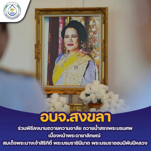 อบจ.สงขลา ร่วมพิธีลงนามถวายความอาลัย และถวายน้ำสรงพระบรมศพ เบื้องหน้าพระฉายาลักษณ์ สมเด็จพระนางเจ้าสิริกิติ์ พระบรมราชินีนาถ พระบรมราชชนนีพันปีหลวง