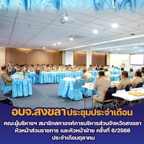 อบจ.สงขลา ประชุมประจำเดือน คณะผู้บริหารฯ สมาชิกสภาองค์การบริหารส่วนจังหวัดสงขลา หัวหน้าส่วนราชการ และหัวหน้าฝ่าย ครั้งที่ 6/2568 ประจำเดือนตุลาคม 2568