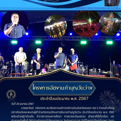 โครงการจัดงานทำบุญวันว่าง ประจำปีงบประมาณ พ.ศ. 2567 ณ วัดปทุมธาราวาส (วัดโป๊ะหมอ) ตำบลบ้านพรุ อำเภอหาดใหญ่ จังหวัดสงขลา