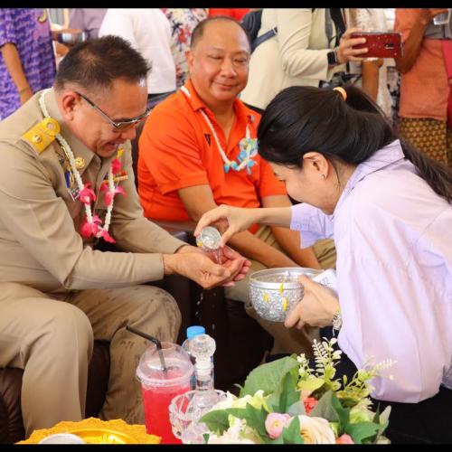นายกไพเจน ชวนสืบสานประเพณีสงกรานต์ 2567 ร่วมสรงน้ำพระกับผู้สูงวัยมหาวิทยาลัยแห่งความสุข และรดน้ำดำหัวขอพรผู้สูงอายุ ณ ศูนย์บริบาลผู้สูงอายุ อบจ.สงขลา
