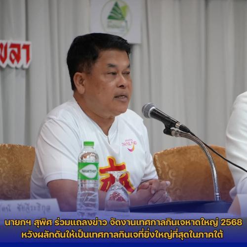 นายกฯ สุพิศ ร่วมแถลงข่าว จัดงานเทศกาลกินเจหาดใหญ่ 2568 หวังผลักดันให้เป็นเทศกาลกินเจที่ยิ่งใหญ่ที่สุดในภาคใต้