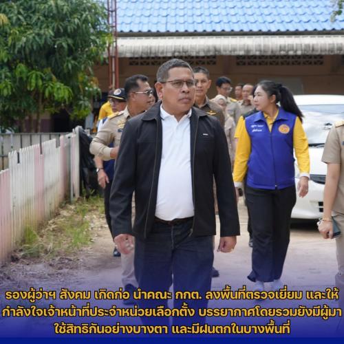 รองผู้ว่าฯ สังคม เกิดก่อ นำคณะ กกต. ลงพื้นที่ตรวจเยี่ยม และให้กำลังใจเจ้าหน้าที่ประจำหน่วยเลือกตั้ง บรรยากาศโดยรวมยังมีผู้มาใช้สิทธิกันอย่างบางตา และมีฝนตกในบางพื้นที่