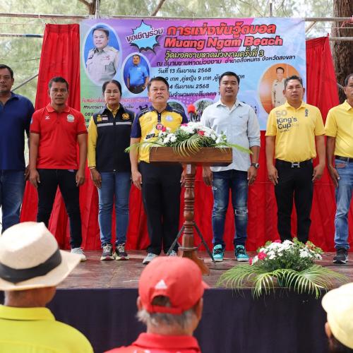 นายกฯ สุพิศ โชว์วงสวิง! ตีลูกบอลเข้าประตู เปิดการแข่งขันวู้ดบอล "ม่วงงามบีช" ครั้งที่ 3 นักกีฬาไทยและต่างชาติเข้าร่วมท่ามกลางบรรยากาศที่สวยงามของชายหาดม่วงงาม จังหวัดสงขลา