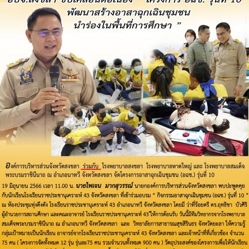 อบจ.สงขลา ขับเคลื่อนต่อเนื่อง “ โครงการ อฉช. รุ่นที่ 10 พัฒนาสร้างอาสาฉุกเฉินชุมชน นำร่องในพื้นที่การศึกษา ”