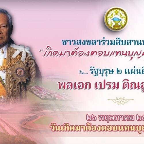 ชาวสงขลา ร่วมจัดงาน “วันเกิดมาต้องตอบแทนบุญคุณแผ่นดิน” เพื่อระลึกถึงคุณงามความดีป๋าเปรม ผู้สร้างคุณูปการให้แผ่นดินไทย และจังหวัดสงขลา