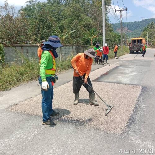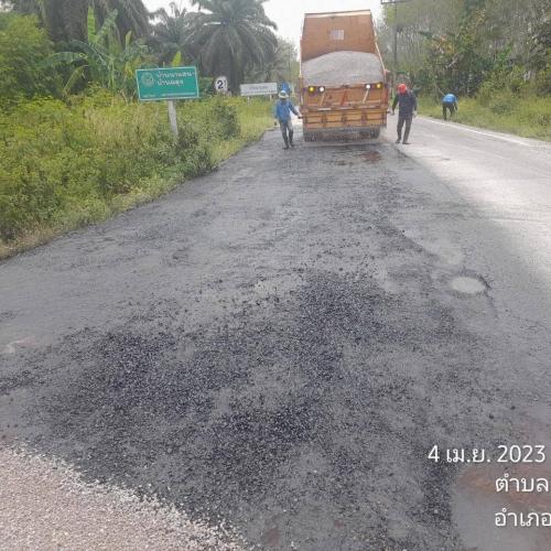 สำนักช่าง อบจ.สงขลา นำเครื่องจักรกลออกปฏิบัติงานซ่อมลาดยางถนน สายบ้านนาแสน-บ้านฉลุง ต.ทุ่งตำเสา อ.หาดใหญ่
