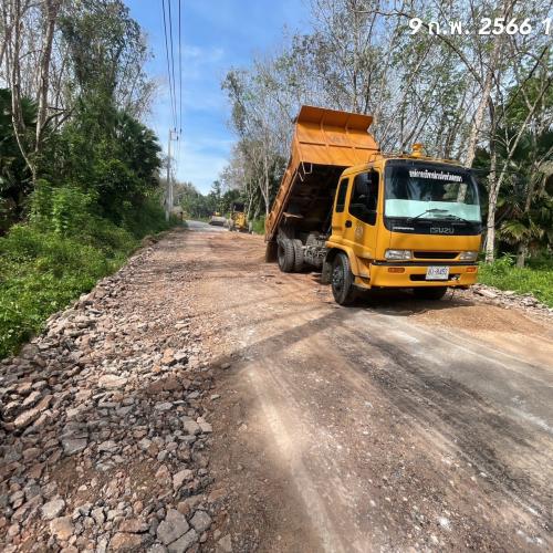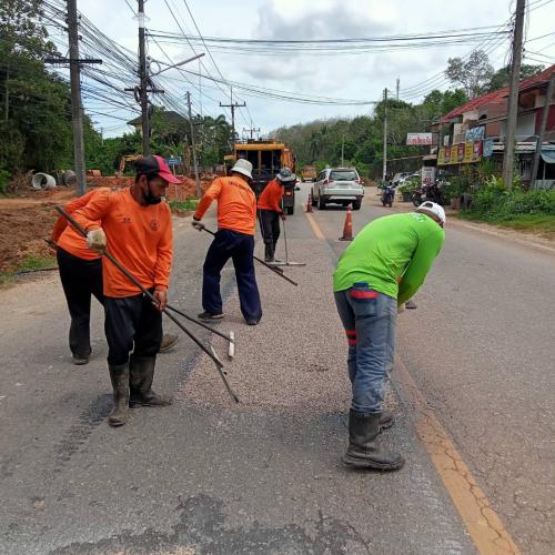 สำนักช่าง อบจ.สงขลา นำเครื่องจักรและวัสดุเข้าพื้นที่ งานซ่อมลาดยาง สายวัดพะโคะ บ.ห้วยราช อ.สทิงพระ จ.สงขลา