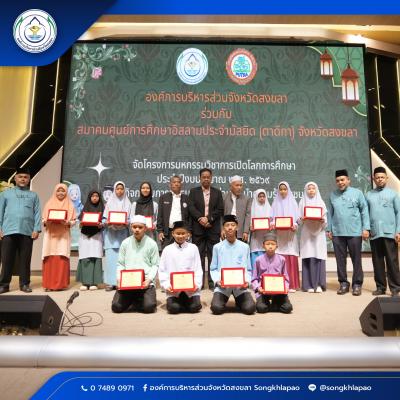 สมาคมศูนย์การศึกษาอิสลามประจำมัสยิด (ตาดีกา) จังหวัดสงขลา ร่วมกับองค์การบริหารส่วนจังหวัดสงขลา จัดโครงการมหกรรมเปิดโลกการศึกษา "กิจกรรมอบรมร่วมคิดร่วมทำ นำความรู้สู่ชุมชน" เพื่อเสริมสร้างศักยภาพบุคลากรและเครือข่ายชุมชน มุ่งพัฒนาองค์ความรู้ ทักษะการทำงานเป็นทีม และการมีส่วนร่วมในการพัฒนาท้องถิ่นอย่างยั่งยืน