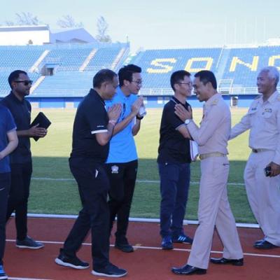 นายก อบจ.สงขลา ให้การต้อนรับ ตัวแทนคณะสหพันธ์ฟุตบอลแห่งเอเซีย และคณะสมาคมกีฬาฟุตบอลแห่งประเทศไทย ที่เดินทางมาตรวจสนามติณฯ เตรียมความพร้อมจัดการแข่งขันชิงแชมป์เอเซีย