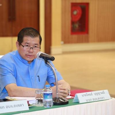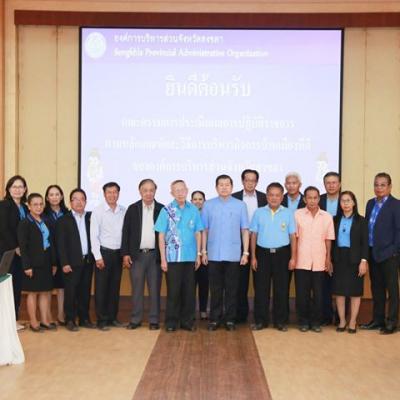 นายก อบจ.สงขลา กล่าวต้อนรับคณะกรรมการฯ ประเมินผลการปฏิบัติราชการตามหลักเกณฑ์ และวิธีการบริหารบ้านเมืองที่ดีของ อบจ.สงขลา