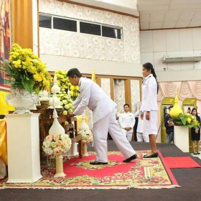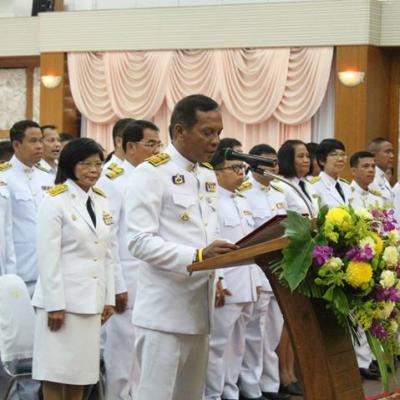 อบจ.สงขลา ร่วมพิธีวางพานพุ่มถวายเครื่องราชสักการะ แด่พระบาทสมเด็จพระปรมินทรมหาภูมิพลอดุลยเดชบรมนาถบพิตร ในฐานะทรงเป็น “พระบิดาแห่งมาตรฐานการช่างไทย”