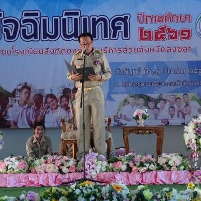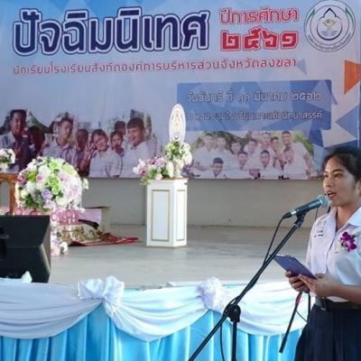 รักษาราชการแทนผู้อำนวยการกองการศึกษา ศาสนา และวัฒนธรรม อบจ.สงขลา กล่าวอวยพรให้นักเรียนที่จบการศึกษาว่า จงประสบผลสำเร็จในการศึกษาขั้นที่สูงกว่า มีงานทำ ประกอบสัมมาอาชีพสุจริต รักใคร่รุ่นพี่รุ่น้องในสถานศึกษาเดียวกัน รักโรงเรียนสมดั่งคติพจน์ประจำสถานบันที่ว่า”สุขา สังฆัสสะ สามัคคี” ความสามัคคีในหมู่คณะจะนำมาซึ่งความสุข
