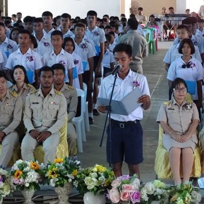 หลังจากนั้นตัวแทนนักเรียนนำกล่าวปฎิญาณตนต่อที่ประชุมอันมีพระฉายาลักษณ์สมเด็จพระเจ้าอยู่หัวฯ ผู้อำนวยการ และคณะครู โดยจะยึดมั่นในความกตัญญูกตเวที เชื่อฟังคำสั่งสอนของบิดามารดา ผู้ปกครอง ครูบาอาจารย์ จักเทิดทูนสถาบันชาติ ศาสนา พระมหากษัตริย์