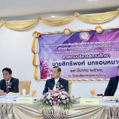 วันอังคารที่ 19 มีนาคม 2562 นายสมหมาย ขวัญทองยิ้ม รองนายกองค์การบริหารส่วนจังหวัดสงขลา เป็นตัวแทนท้องถิ่นร่วมต้อนรับการประเมินผู้อำนวยการเชี่ยวชาญวิทยาลัยเทคนิคหาดใหญ่ นายสิทธิพงศ์ นกแอนหมาน ณ วิทยาลัยเทคนิคหาดใหญ่