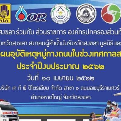 10 เมษายน 2562 นายนิพนธ์ บุญญามณี นายกองค์การบริหารส่วนจังหวัดสงขลา ประธานในพิธีเปิดการประชุมบูรณาการเชิงปฏิบัติการและฝึกซ้อมแผนอุบัติเหตุหมู่ทางถนน ในช่วงเทศกาลสงกรานต์ ประจำปีงบประมาณ 2562 โดยมีนายประพันธุ์ ศรีสุวรรณ ปลัดองค์การบริหารส่วนจังหวัดสงขลา กล่าวรายงานต่อท่านประธาน โดยมีหน่วยงานที่เข้าร่วมประกอบด้วยศูนย์ป้องกันและบรรเทาสาธารณภัย เขต 12 สงขลา สำนักงานป้องกันและบรรเทาสาธารณภัยจังหวัดสงขลา พลังงานจังหวัดสงขลา คลังปิโตรเลียมสงขลา สมาคมผู้ค้าน้ำมันจังหวัดสงขลา องค์กรปกครองส่วนท้องถิ่น รวมถึงมูลนิธิและภาคเอกชน เข้าร่วมการประชุมบูรณาการเชิงปฏิบัติการฯ ณ บริษัท เค ที พี ปิโตรเลียม จำกัด ถนนลพบุรีราเมศวร์ ตำบลพะวง อำเภอเมือง จังหวัดสงขลา โดยที่องค์การบริหารส่วนจังหวัดสงขลา ได้จัดทำการประชุมบูรณาการเชิงปฏิบัติการ และฝึกซ้อมแผนอุบัติเหตุหมู่ทางท้องถนนในข่วงเทศกาลสงกรานต์ ระดับจังหวัดขึ้น เพื่อเป็นการเตรียมความพร้อมของจังหวัด ในการป้องกันและลดความเสียหายจากภัย ที่เกิดจากอุบัติเหตุหมู่บนท้องถนนในช่วงเทศกาลสงกรานต์ พ.ศ.2562 และสามารถช่วยเหลือผู้ประสบภัย และควบคุมสถานการณ์ได้อย่างรวดเร็ว ระหว่างวันที่ 11 - 17 เมษายน 2562 โดยแบ่งออกเป็น 2 กิจกรรมคือ กิจกรรมการประชุมบูรณาการเชิงปฏิบัติการอุบัติเหตุหมู่บนท้องถนน ในช่วงเทศกาลสวกรานต์ โดยบรรยายให้ความรู้เรื่องของการดับเพลิงขั้นต้น การฝึกซ้อมดับเพลิง ทั้งภาคทฤษฏีและภาคปฏิบัติ และกิจกรรมที่ 2 เป็นการซักซ้อมแผนอุบัติเหตุหมู่บนท้องถนนในช่วงเทศกาลสงกรานต์ โดยมีหน่วยงานที่เข้าร่วมกิจกรรมประกอบด้วย หน่วยงานราชการ องค์กรปกครองส่วนท้องถิ่น ภาคเอกชนและมูลนิธิรวม 40 หน่วยงาน