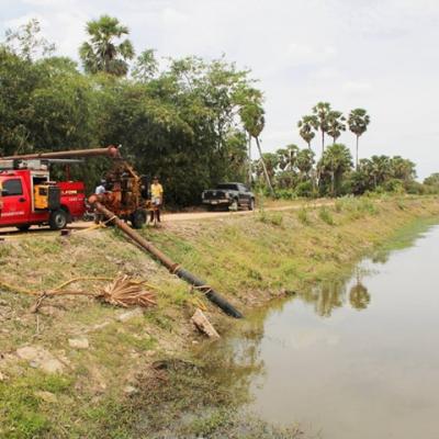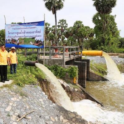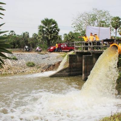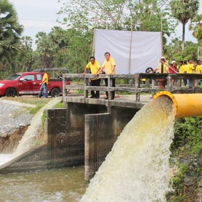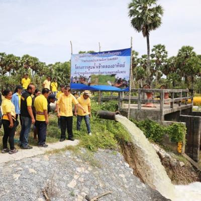 นายก อบจ.สงขลา ลงพื้นที่ตำบลคูขุด ตรวจการทำงานของเครื่องสูบน้ำเพื่อผันน้ำเข้าคลองอาทิตย์