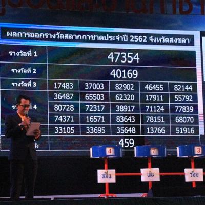 นายก อบจ.สงขลา ร่วมเป็นสักขีพยานในการออกผลรางวัลสลากกาชาดการกุศล ประจำปี 2562 มอบโชคให้กับผู้โชคดี