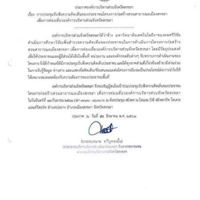 รายงานความก้าวหน้าโครงการก่อสร้างสวนสาธารณะเมืองสงขลาเพื่อการท่องเที่ยวองค์การบริหารส่วนจังหวัดสงขลา