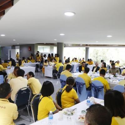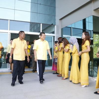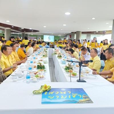 นายก อบจ.สงขลา กล่าวต้อนรับ หัวหน้าส่วนราชการต่างๆ ที่มาร่วมกิจกรรม เสวนายามเช้า ณ อาคารศูนย์บริบาลผู้สูงอายุ อบจ.สงขลา