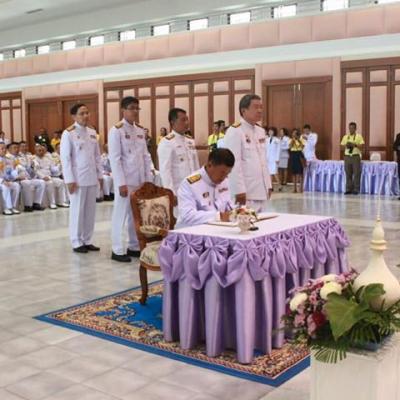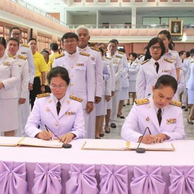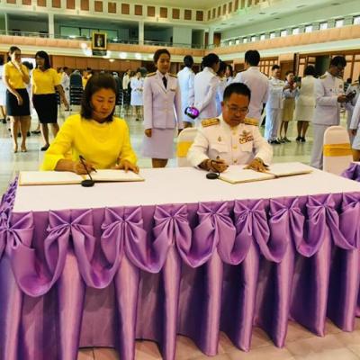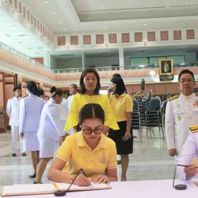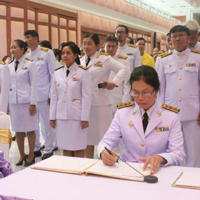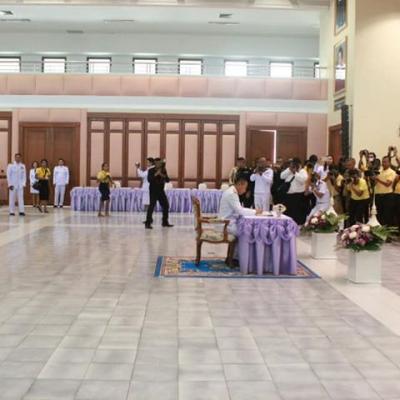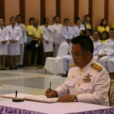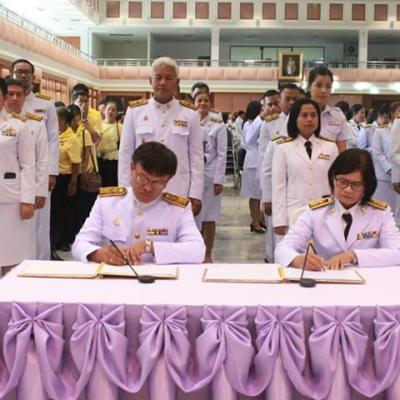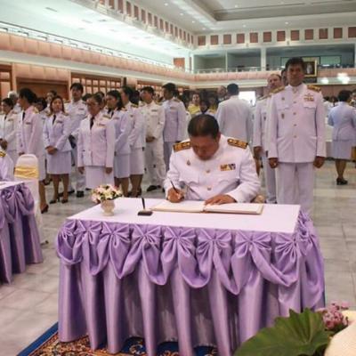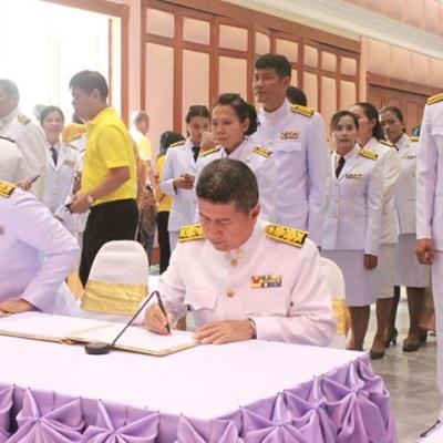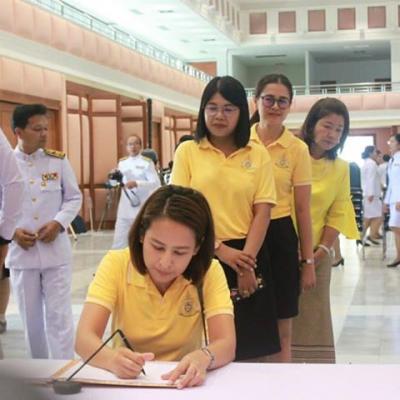 ปลัดองค์การบริหารส่วนจังหวัดสงขลา ข้าราชการ และพนักงานองค์การบริหารส่วนจังหวัดสงขลา ร่วมพิธีลงนามถวายพระพรชัยมงคล หอประชุมเปรม 100 ปี โรงเรียนมหาวชิราวุธ