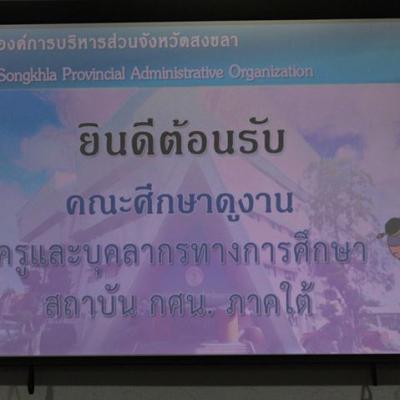 วันพุธที่ 3 กรกฎาคม พ.ศ. 2562 นายอัฐชัย พรหมมณี รองปลัดองค์การบริหารส่วนจังหวัดสงขลา นำคณะเจ้าหน้าที่ ศูนย์บริบาลผู้สูงอายุ องค์การบริหารส่วนจังหวัดสงขลา ให้การต้อนรับคณะศึกษาดูงานจาก สถาบัน กศน.ภาคใต้ จัดโครงการพัฒนาบุคลากรเพื่อเพิ่มประสิทธิภาพการปฏิบัติงานในจังหวัดชายแดนภาคใต้ ประกอบด้วยกลุ่มครู และบุคลากรทางการศึกษา จำนวน 80 คน ณ ศูนย์บริบาลผู้สูงอายุ องค์การบริหารส่วนจังหวัดสงขลา และนางสาวนาถลดา จิตสุวรรณ หัวหน้าศูนย์รับแจ้งเหตุและสั่งการการแพทย์ฉุกเฉิน ได้เป็นวิทยากร ในการบรรยายพิเศษ การใช้เทคโนโลยีในการบริหารจัดการองค์กร ให้กับคณะศึกษาดูงานฯ ได้นำไปปรับใช้กับพื้นที่ในจังหวัดชายแดนภาคใต้ได้อย่างมีประสิทธิภาพสูงสุด