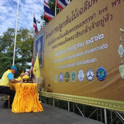 วันที่ 26 กรกฎาคม พ.ศ. 2562 เวลา 09.00 น. นายนูญ สายอ๋อง ผู้อำนวยการโรงเรียนเกาะแต้วพิทยาสรรค์ กล่าวต้อนรับผู้ร่วมโครงการปลูกต้นไม้เฉลิมพระเกียรติเนื่องในโอกาสวันเฉลิมพระชนมพรรษา 67 พรรษา พระบาทสมเด็จพระวชิรเกล้าเจ้าอยู่หัว โดย นายเฉลิมพันธ์ ยินเจริญ ผู้อำนวยการสำนักงานทรัพยากรธรรมชาติและสิ่งแวดล้อมจังหวัดสงขลา เป็นประธาน และนายไพโรจน์ นัครา นักวิชาการป่าไม้ชำนาญการพิเศษผู้แทนสำนักจัดการทรัพยากรป่าไม้ที่ 13 (สงขลา) กล่าวรายงาน ณ โรงเรียนเกาะแต้วพิทยาสรรค์ ตำบลเกาะแต้ว อำเภอเมือง จังหวัดสงขลา