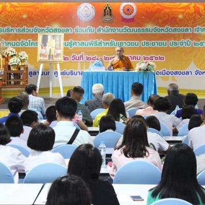 วันที่ 28 สิงหาคม 2562 นายวิโรจน์ ทัฬหะวาสน์ ผู้เชี่ยวชาญพิเศษด้านการบริหารงานบุคคล องค์การบริหารส่วนจังหวัด เป็นประธานในพิธีเปิด โดยนางหิรัญญา ศรีปานแก้ว รองปลัดองค์การบริหารส่วนจังหวัดสงขลา กล่าวรายงานโครงการเรียนรู้ศาสนพิธีสำหรับเยาวชน ประชาชน ประจำปี 2562 รุ่นที่ 2 ณ ห้องประชุมติณสูลานนท์ ศูนย์บริบาลผู้สูงอายุ องค์การบริหารส่วนจังหวัดสงขลา