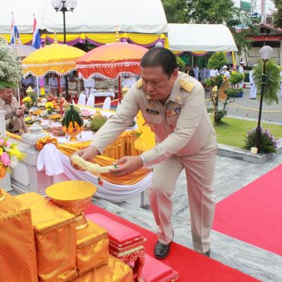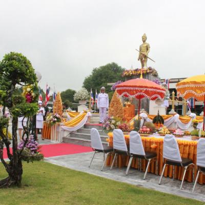 รองปลัด อบจ.สงขลา นำคณะข้าราชการ และพนักงาน อบจ.สงขลา ร่วมพิธีบวงสรวง และวางพวงมาลาถวายราชสักการะ พระบรมราชานุสาวรีย์พ่อขุนรามคำแหงมหาราช