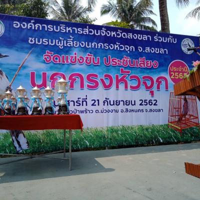 วันที่ 21 กันยายน 2562 นายประพันธุ์ ศรีสุวรรณ ปลัดองค์การบริหารส่วนจังหวัด ปฏิบัติหน้าที่ นายกองค์การบริหารส่วนจังหวัดสงขลา เป็นประธานเปิดการแข่งขันนกกรงหัวจุก ประจำปี 2562 ณ สนามราวป่าพร้าว ตำบลม่วงงาม อำเภอสิงหนคร จังหวัดสงขลา