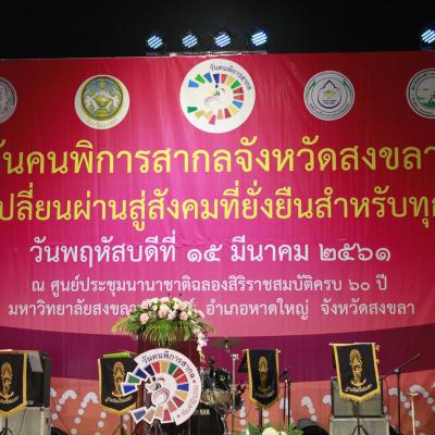 วันพฤหัสบดี ที่ 15 มีนาคม 2561 เวลาประมาณ 09.30 น. นายดลเดช พัฒนรัฐ ผู้ว่าราชการจังหวัดสงขลา เป็นประธานในพิธีเปิดงานวันคนพิการสากลจังหวัดสงขลา ประจำปี 2561 ภายใต้แนวคิด “เราจะไม่ทิ้งใครไว้ข้างหลัง” โดยมีนาย จรัส ชุมปาน ผู้เชี่ยวชาญพิเศษด้านการพัฒนาสังคม ตัวแทนจากองค์การบริหารส่วนจังหวัดสงขลา เป็นเกียรติร่วมงานด้วย และนายอับดลรอหมาน กาเหย็ม รองนายกองค์การบริหารส่วนจังหวัดสงขลา ขึ้นรับโล่ประกาศเกียรติคุณสถานที่ท่องเที่ยวภายใต้การกำกับดูแลของหน่วยงานรัฐในปีนี้ด้วย