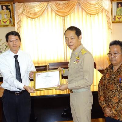 ปลัด อบจ. ปฏิบัติหน้าที่ นายก อบจ.สงขลา นำคณะข้าราชการ และเจ้าหน้าที่ องค์การบริหารส่วนจังหวัดสงขลา เข้ารับมอบประกาศเกียรติคุณบุคคลดีเด่น ด้านคุณธรรม จริยธรรม มีความเสียสละ คำนึงถึงประโยชน์ส่วนรวมและปฏิบัติหน้าที่ราชการตามหลักธรรมาภิบาล ประจำปี 2562