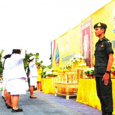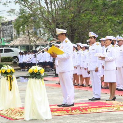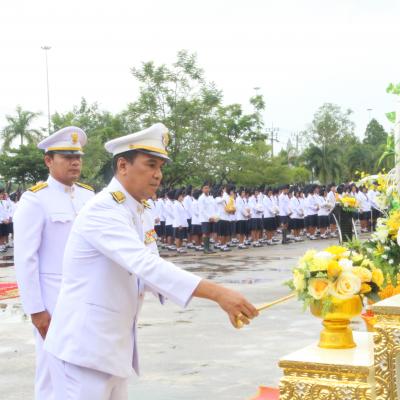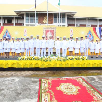 หัวหน้าสำนักปลัดองค์การบริหารส่วนจังหวัดสงขลา นำคณะข้าราชการ และเจ้าหน้าที่ องค์การบริหารส่วนจังหวัดสงขลา ร่วมพิธีทำบุญตักบาตร ถวายพานพุ่มราชสักการะ ถวายราชสดุดี และถวายบังคม