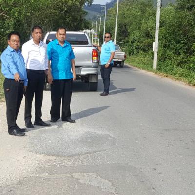 ปลัด อบจ. ปฏิบัติหน้าที่ นายก อบจ.สงขลา สมาชิกสภา อบจ.สงขลา เขต อ.นาหม่อม ผอ.รกองช่าง และเจ้าหน้าที่กองช่างอบจ.สงขลา ลงพื้นที่ตรวจถนน