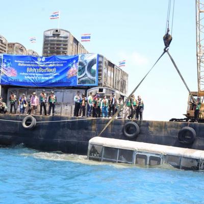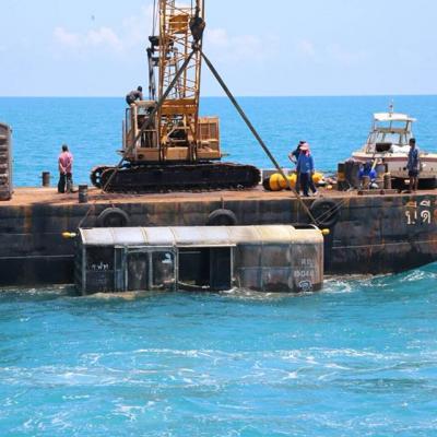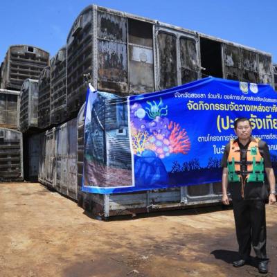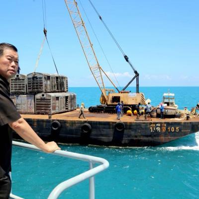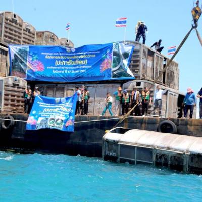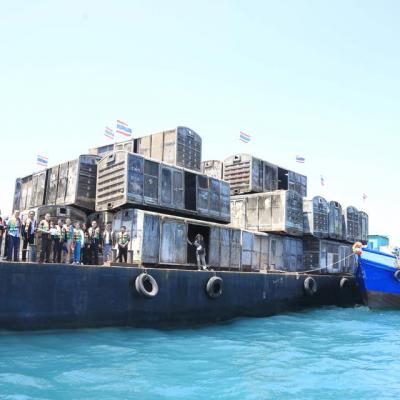 องค์การบริหารส่วนจังหวัดสงขลา จึงได้จัดโครงการ จ้างเหมาขนย้ายวัสดุ ในการจัดสร้างแหล่งอาศัยสัตว์ทะเล (ปะการังเทียม) โดยขอความอนุเคราะห์ตู้รถไฟเก่า จากการรถไฟแห่งประเทศไทย จำนวน 39 ตู้ และท่อกลม คสล.ที่ไม่ใช้แล้วจากกรมทางหลวง จำนวน 200 ท่อ มาจัดวางเป็นแหล่งอาศัยสัตว์ทะเล เพื่อเป็นแหล่งอนุบาลและเพิ่มปริมาณสัตว์น้ำ เนื่องจากเล็งเห็นถึงความสำคัญในการบริหารจัดการทรัพยากรทางทะเล ให้เกิดความเหมาะสมกับสภาวะปัจจุบัน เพราะหากไม่มีการบริหารจัดกาให้เหมาะสม ทรัพยากรทางทะเลของจังหวัดสงขลา จะมีปริมาณลดลงอย่างรวดเร็ว