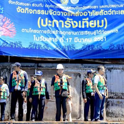 17 มี.ค. 2561 จังหวัดสงขลา ร่วมกับองค์การบนิหารส่วนจังหวัดสงขลา โยธาธิการจังหวัดและท้องถิ่นจังหวัดสงขลา จัดกิจกรรมเนื่องในวันท้องถิ่นไทย โดยการจัดวางแหล่งอาศัยสัตว์ทะเล (วางปะการังเทียม) บริเวณอ่าวไทย